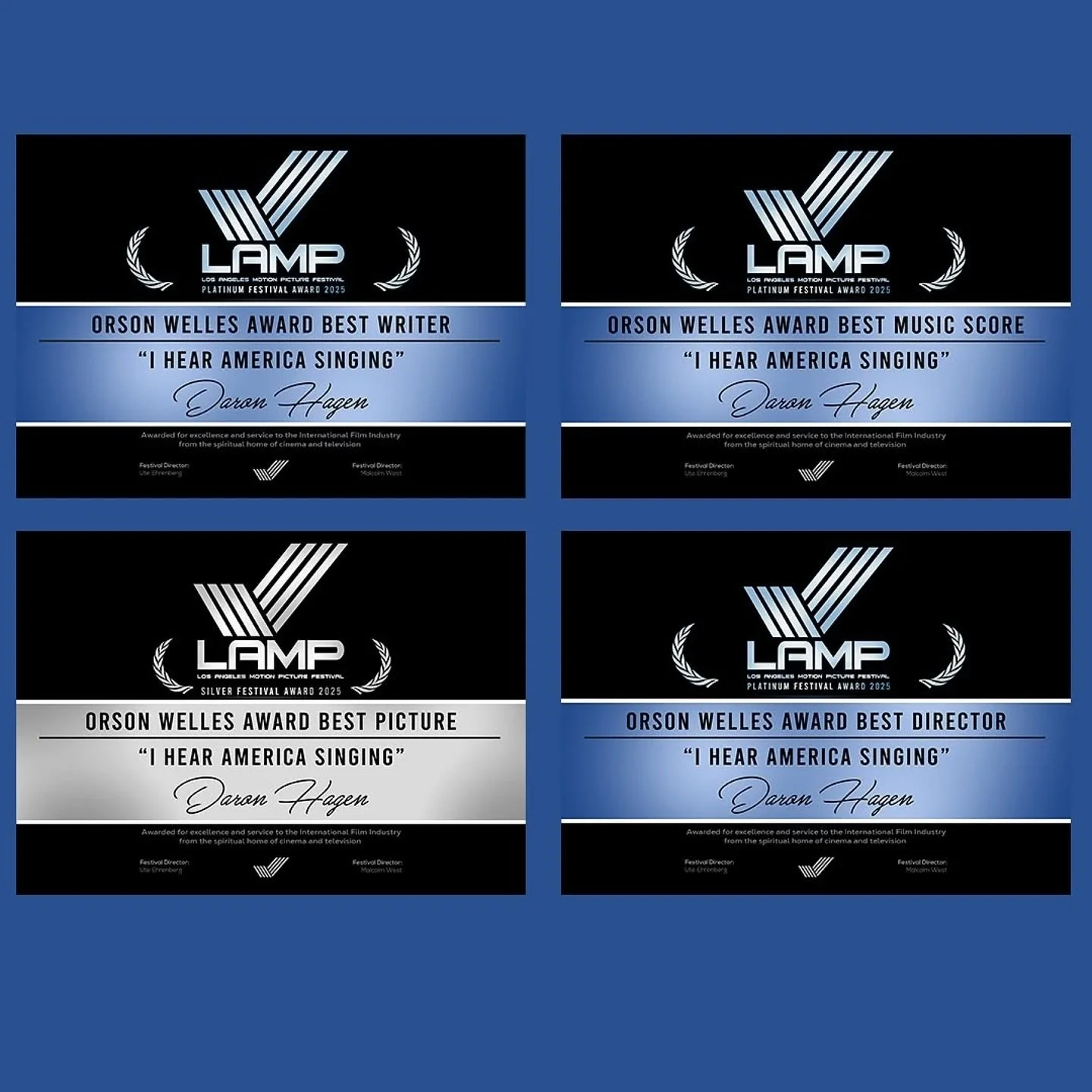 Winner — Platinum Festival Award 2025 Orson Welles Award for Best Director; Platinum Festival Award 2025 Orson Welles Award for Best Writer; Platinum Festival Award 2025 for Best Music Score; Silver Festival Award 2025 for Best Picture — Los Angeles Motion Picture Festival